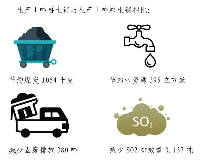 铜是少数可以重复循环利用的金属之一,和其他金属相比,它最大的亮点是可以100%循环利用。实际上,再生铜与传统由矿石熔炼的铜在质量和性能表现上没有任何区别,我国把大力发展再生铜循环利用作为补充铜资源不足的重要手段,近年来取得了较快发展。发展再生铜循环利用还有利于促进节能减排,降低单位能耗,减少碳排放。