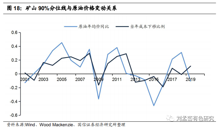 铜矿成本中30-40%是能源成本,主要是柴油。上半年油价大跌也导致矿山成本线下移,随着4月底以来原油价格触底反弹,矿山成本也随之反弹。