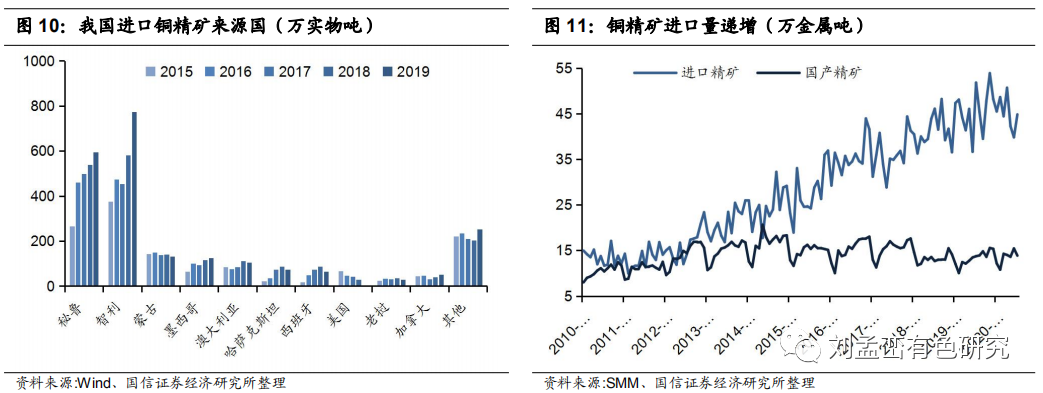 精矿明后年预期增量大但不确定性高。根据机构统计的未来铜矿主要项目,未来2年铜矿增产主要集中在南美的智利、秘鲁,非洲刚果金,以及亚洲的印尼。今年新冠疫情爆发后,3月份各国均宣布进入紧急状态,并多次延长紧急状态,南美洲主要产铜国受影响较为严重。