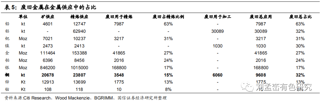 疫情影响废旧金属回收。废旧金属回收利用是所有金属供应的重要一环,基本金属当中除了锌之外,其余品种的废旧金属均占其总供应量30%以上。铜精炼环节加入的废铜占冶炼铜总量的15%,再考虑到加工环节加入的废铜,废铜在精炼和加工环节用量占铜总供应量达32%,废铜供应量大小直接影响供需平衡。今年国内疫情爆发以来,各地采取严格的隔离措施,废铜的回收、拆解活动停顿了2个月左右,造成废铜供应紧张,据SMM统计2-3月份废铜单月减量至少在3-4万吨,导致精废价差一度收窄甚至倒挂。