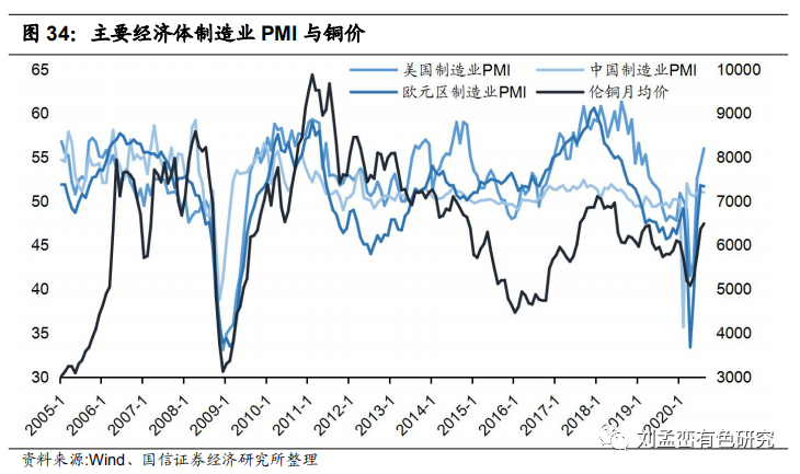 全球主要经济体制造业复苏利好铜价。铜在各个领域的广泛应用决定了铜价与宏观经济走势密切相关,其工业属性决定了铜价与主要经济体制造业PMI走势具有很强的关联性。当前主要经济体均处于疫情后的复苏时期,9月美国和欧元区Markit制造业PMI分别为53.5和53.7,均已连续3个月位于荣枯线以上且环比8月份数据有较大上升,中国制造业PMI指数连续6个月位于荣枯线以上且新订单分项指数持续向好,说明全球主要经济体制造业具有较强的复苏动力,中短期内将继续拉动铜消费。