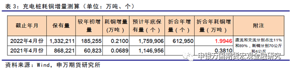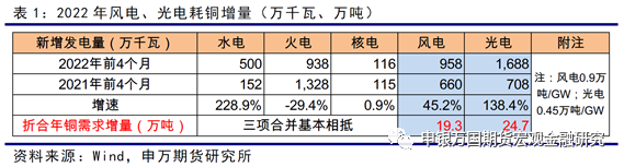 由于新能源在电力、交通设备上的历史性变化,预计今年国内新能源铜需求增量约为60-65万吨,其中风电光电耗铜增量约为44万吨,新能源汽车耗铜增量约为16.5万吨,充电桩耗铜增量约为2万吨。