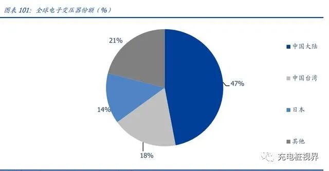 全球变压器制造厂集中在中国大陆。全球电子变压器制造商主要集中在中国大陆、中国 台湾及日本,骨干企业包括台达、光宝、TDK、胜美达、海光、京泉华、可立克等。其中,中国大陆本土企业约占全球 47%的市场份额、中国台湾企业约占 18%的市场份额,日本制造商约占全球 14%的市场份额。