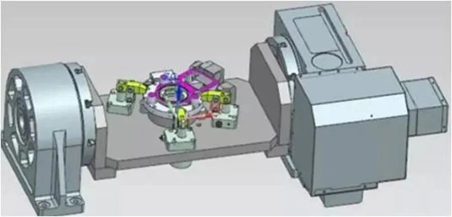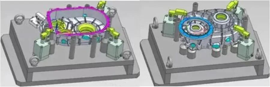 图7 柔性切削下电机端盖和变速器底壳的快速装夹示意