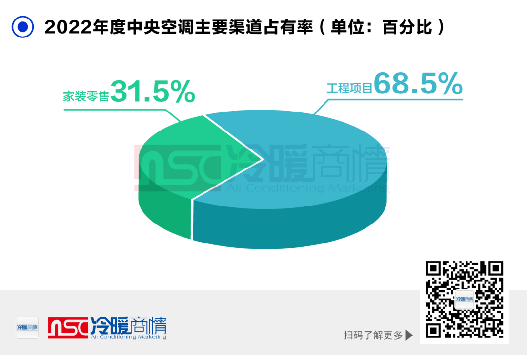 从渠道格局来看,零售市场整体下滑2%左右,上半年稳中有增,下半年特别是第四季度下滑严重。虽然部分主流品牌赋能核心经销商大刀阔斧布局零售市场,开设或升级专卖店、体验店、旗舰店,异彩纷呈,取得不少行业和用户的关注。但新房与二手房交易市场的下滑、消费者降低成本预算或直接取消工程等现象直接影响到了中央空调家装零售市场的增长走势,加之激烈的市场竞争,家装零售利润空间越来越小。
