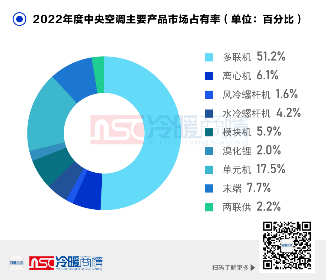 从产品格局上看,2022年以多联机为代表的氟系统依然稳占全国超50%的份额,但表现并未达到预期增长,约为3%左右的下滑,疫情冲击、产品涨价、物料受阻、房地产下行压力、渠道库存风险、渠道商转型、消费收缩等成为其发展受阻的重要制约因素。