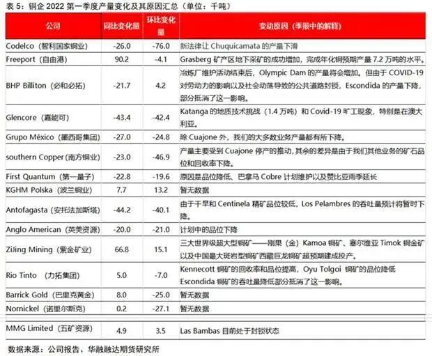 4.3 铜企2022Q1产量变动的原因汇总