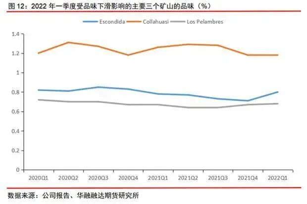 智利和秘鲁是世界上重要的两个铜矿生产国,智利更是在19世纪就已经开始铜矿开采,随着开采时间的增长,智利和秘鲁两个老牌铜资源国的铜矿品位不可避免的下降。Escondida、Collahuasi和Los Pelambres这三座铜矿在2022年一季度都受到了低品位带来的产量下降的影响,且短期内并不会得到有效的解决。