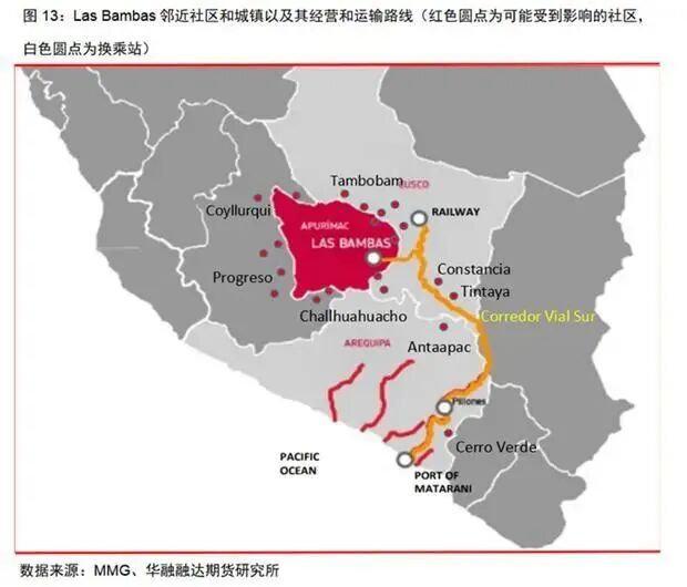 秘鲁的Las Bambas铜矿,世界上最大的铜矿之一。MMG Limited(五矿资源,以下简称MMG)作为它的股东通过该矿山为秘鲁贡献了平均1%的GDP。2022年4月20日MMG发布公告称:”出于安全考虑,Las Bambas的生产被暂停,此前Fuerabmaba社区的成员进入Las Bambas工地,抗议据称其未能遵守社会投资承诺。”到5月30日MMG宣布Las bambas铜矿周边紧急状态再延60天,这是迄今为止最长的停产时间。