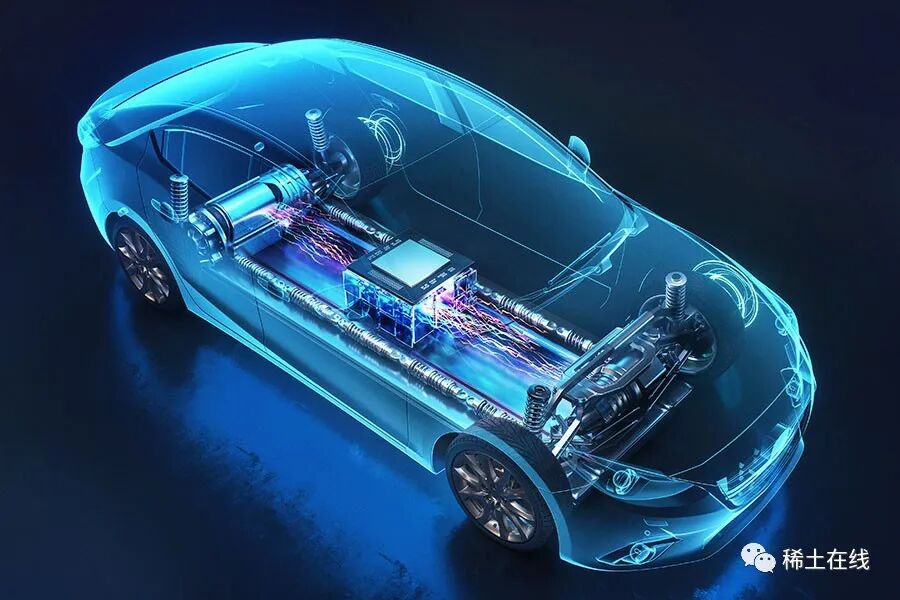 钕是一种具有强磁性的物质。当与微量的镝和铽混合时,即使在高达200摄氏度的温度下也能保持磁性。在汽车行业,整车制造商在推进电机中使用这些钕基永磁体,通常被称为“电动汽车的心脏”。在此设置中,钕基永磁体放置在转子(电机的旋转部分)中,而由绕线制成的线圈放置在转子周围,以使用“永磁同步电机(PMSM)”配置驱动电机。