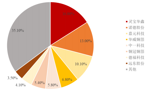 从下游看,标准铜箔目前毛利率整体上较低,核心利润来源还是锂电铜箔。锂电铜箔环节自身竞争格局较为分散,相反下游客户锂电环节则格局更加集中,这也意味着在对客户这一方面,铜箔企业也很难具备强势的话语权。![]()
