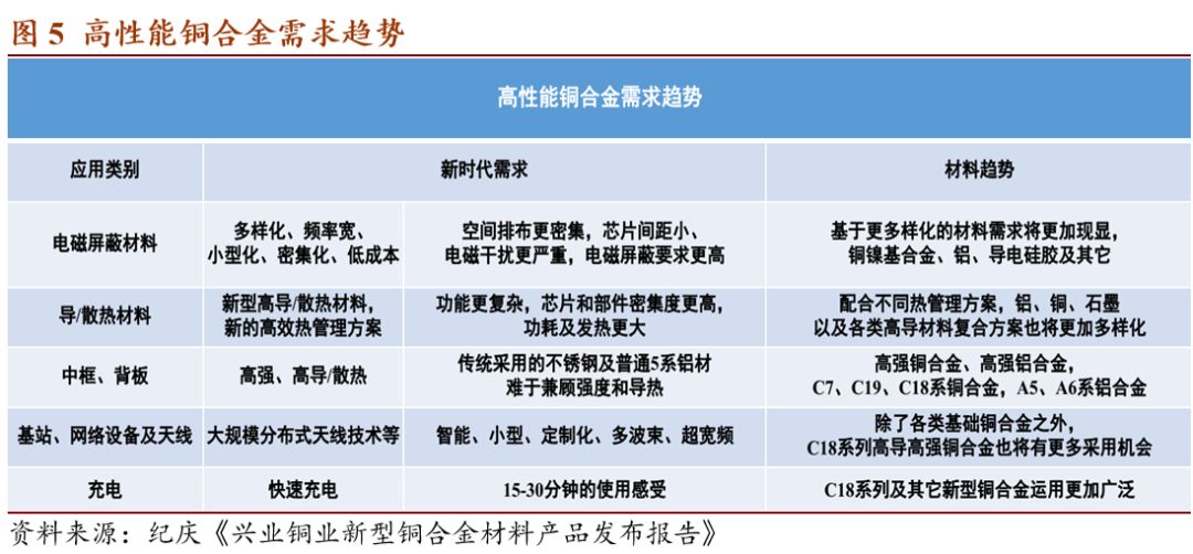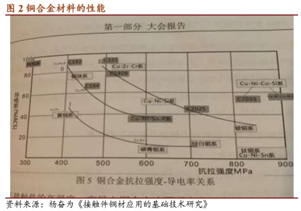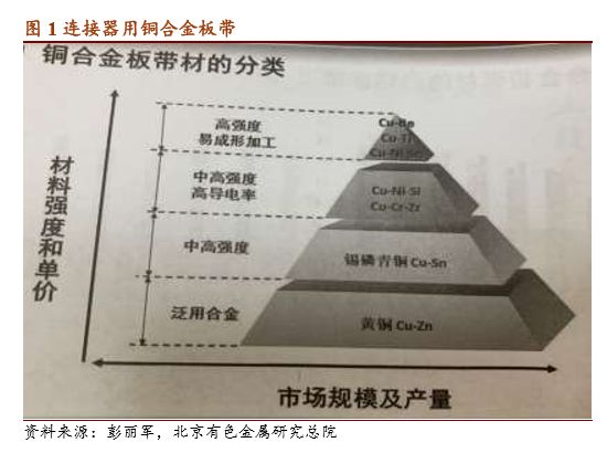 3.铜镍硅合金综合性能优异,渗透率在提升,且潜力大。电子产品小型化和载流量提升趋势明显。在大电流连接场合,如基站电源连接器、新能源汽车连接器和智能手机连接器,高导电铜镍硅合金可抑制发热和温升,对其他铜合金形成较强的替代作用,如黄铜、锡磷青铜等。
