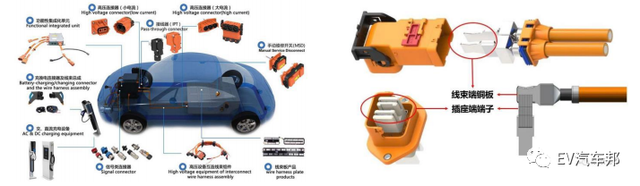在传统低压线束以外,新能源汽车以高压电池包为动力来源,新增高压线束为传输载体。汽车线束是控制汽车电气和电子元件功能的主要载体,是汽车的血管和神经,为各电子元件提供动力、传递和反馈信号。根据汽车线束耐电压高低可以分为低压线缆和高压线缆,传统燃油车主要应用低压线缆,而电动车线束新增了高压线缆,其承载电压约为 600V。新能源汽车尤其是纯电动汽车,动力来源靠高压电池包提供,传输载体为高压线束,连接充电口座、高压电池包、逆变器、电机,车载充电机等大功率设备。高压线束主要包括:高压连接器、高压线缆,接地端子和扎带、外包材料、胶带、热缩套管、胶套、安装支架等辅材。