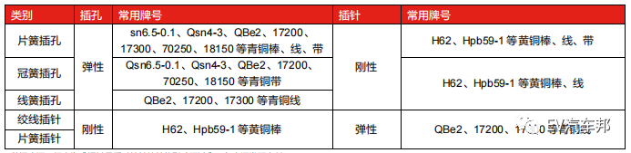 连接器的接触件是完成电连接功能的核心部件,占线束重量的 15%左右。连接器位于电缆两端,连接导线与适当的配对元件,起着电气连接和信号传递作用。连接器通常由接触件(端子和插针)和外覆的塑料构成。汽车线束的接触件是汽车连接器完成电连接功能的核心部件,是汽车线束端子压接和保证线束正常工作的关键。因此,对接触件用铜合金材料的力学/导电/尤其抗应力松弛和折弯成型性能有很高的要求,其重量一般占线束的 15%左右。