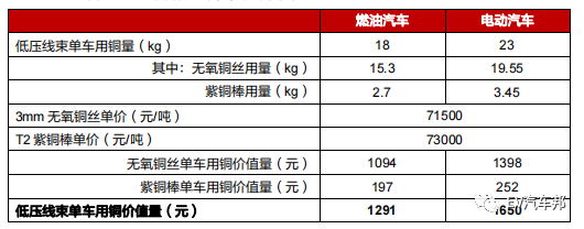 1 纯电动汽车单车低压线束用铜量比燃油汽车多 5 公斤