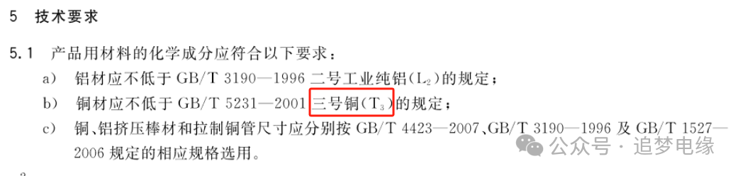 我们上来还是先看标准:《GB/T-14315-2008 电力电缆导体用压接型铜、铝接线端子和连接管》中要求: