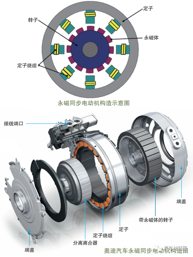 总的来说,永磁同步电机对比感应电机,它们各自都具有明显的优势。不过,目前纯电动车的续航里程势必是一项及其重要的指标,永磁同步电机的高效率能更好地提高续航里程。而且高耐热性、高磁性能钕铁硼永磁体的成功开发以及电力电子元件的进一步发展和改进,使稀土永磁同步电机的发展进一步完善。但就现在的发展趋势看,永磁同步电机似乎前景更好。随着新能源汽车驱动技术的快速发展,许多新结构或新概念电机已经投入研究。其中新型永磁无刷电机是目前最有前景的电机之一,包括混合励磁型、轮毂型、双定子型、记忆型以及磁性齿轮复合型等。此外非晶电机也开始走进新能源汽车领域,作为新一代高性能电机,其自身的优越性必将对新能源汽车产业的发展起到巨大的推动作用。